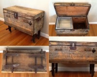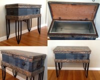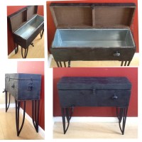 These vintage carpenter toolboxes all have their own story, found in attics, basements, barns, these wooden boxes have been given new purpose. Centuries old, with amazing craftsmanship and detail, these vintage beauties have been transformed into ice chests. Each one is lined with custom metal boxes, insulated and and equipped with a drain, bottle opener and custom legs. They can fit anything from cans of soda, bottles of beer, bottles of wine or even just food. All chests have the option of 3 different size legs, 17″, 19″ or wheels for coffee table style.