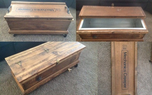 $480-ManCave Ice Chest Coffee Table with Mechanic Creeper Tray set (16″ x 38″x 17″ h, sold separately $450/$30) Published March 13, 2014 at 800 × 500 in Vintage Ice Chests & Antique Treasures ← Previous Next → $480-ManCave Ice Chest Coffee Table with Mechanic Creeper Tray set (16x38x17H, sold seperately $450/$30)